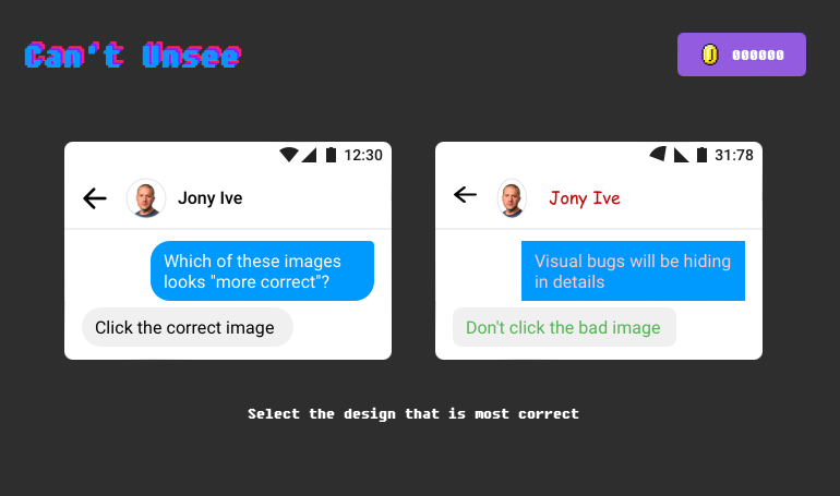 Te muestra dos imagenes y tienes que seleccionar cual de las dos cumple con los principios basicos del diseño de interfaz.