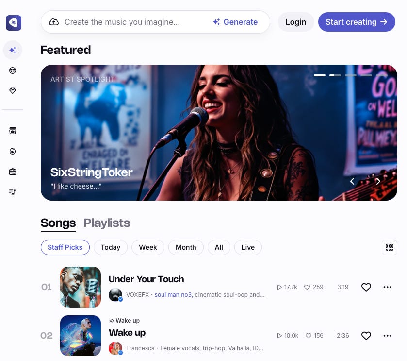 Riffusion usa IA para ayudarte a crear pistas musicales desde cero, en cualquier estilo, con voces o sin ellas. Ideal para vídeos, podcasts o simplemente jugar a ser productor.